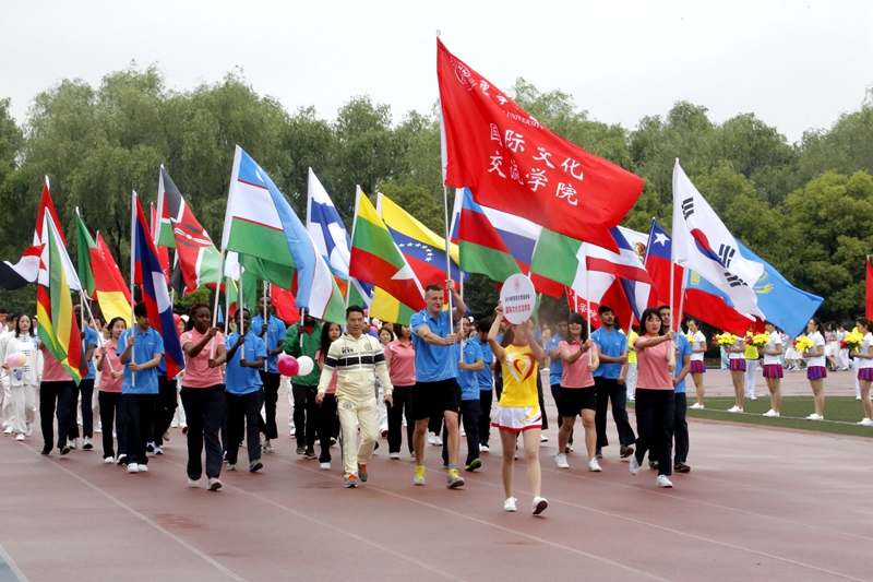 5月10日,2016年久久久久国产成人精品亚洲综合运动会暨第38届体育节开幕式在松江校区举行。开幕式上不仅进行了方阵队列展示,还进行了教工太极拳比赛、学生舞龙展演以及啦啦操展演等精彩的文体表演。