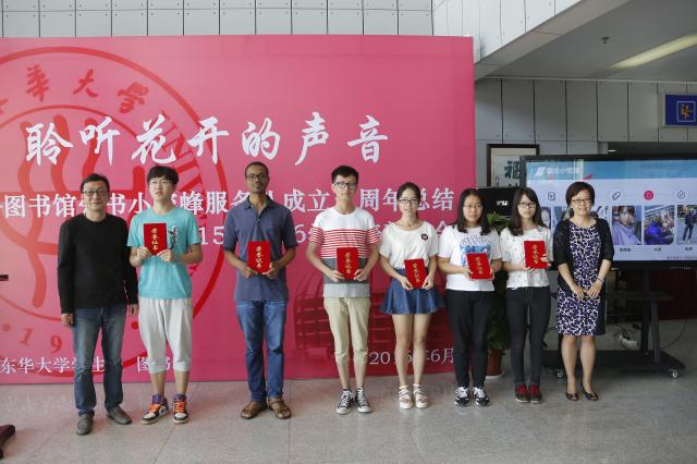 据悉,图书馆十分重视对勤工助学学生的管理工作,将其纳入配合学校人才培养任务的重要组成部分。图书馆爱书小蜜蜂服务队建队五载,共有千余人次学生入队实践,从建队伊始的一朵“花苞”,到五年后灿烂绽放,服务队承载着全校师生的期盼与梦想前行。尤其近两年,服务队融入到图书馆智能服务和现代化改造等一系列改革创新举措中来,以形式多样的活动形式促进队内交流,增强校内影响力,实践成效显著,对于改善和提高图书馆的政治生态、文化氛围、服务水平等发挥了积极的作用,为构建和谐校园作出了应有的贡献。祝愿服务队成员再接再厉、开拓创新,围绕校、馆“十三五”发展规划目标,以饱满的精神,迎接新机遇、新挑战,为学校改革发展添光彩。