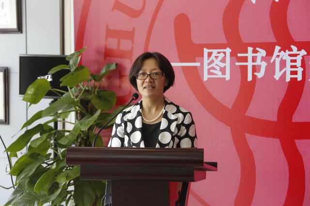 刘淑慧在讲话中肯定并感谢图书馆及各职能部处的老师们对学生团队富有成效的组织和管理工作。她指出,5年以来,图书馆爱书小蜜蜂服务队建设取得了长足发展,人员范围不断扩大,工作内涵更加丰富,并逐步由单纯的勤工助学团队发展为文化宣传阵地,在图书馆勤工助学岗位上做出了卓有成效的创新工作,并通过“修德明辨”、“青春助力中国梦”等主题团队建设活动培养了团队成员的理想信念与道德情操。多渠道的培养、实践与锻炼让更多学生的组织能力、创新能力、服务沟通能力及团队合作能力等综合能力得到显著提升。她希望在新一届队委的带领下,服务队成员能够秉持优良传统,再接再励,在图书馆的服务实践中彰显青春风采,促进全面发展。