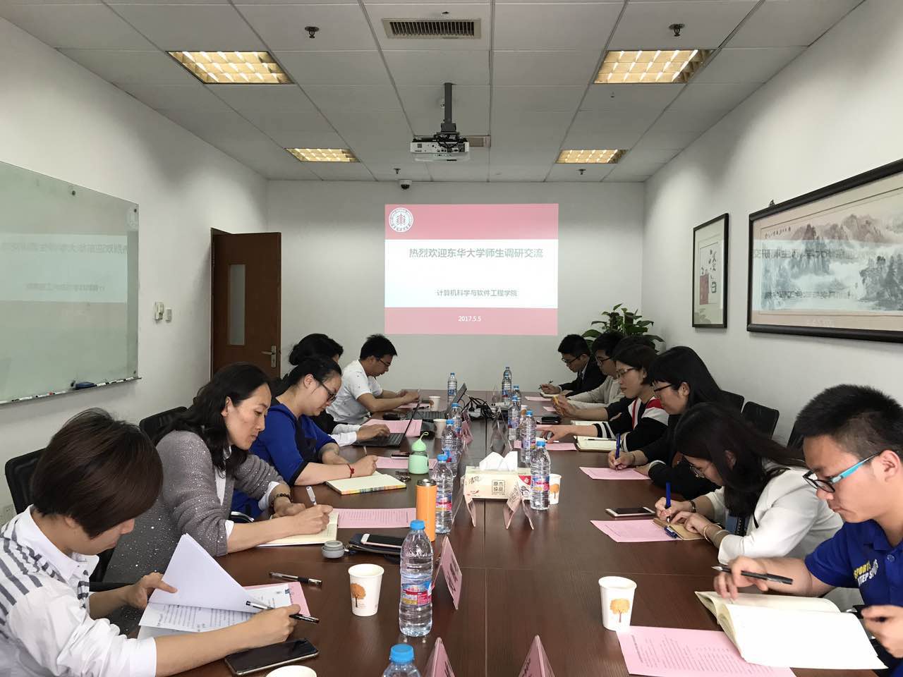 5月5日下午,信息学院党委副书记林惠英带领学院专职辅导员和研究生党支部书记代表等一行8人前往华东师范大学计算机科学与软件工程学院进行学生工作学习交流。华东师范大学计算机科学与软件工程学院党委副书记洪燕和全体专职辅导员以及研究生党支部书记代表参加交流会。