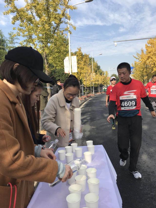 7点30分马拉松赛正式开始,志愿者们积极主动地为需要饮水和降温的参赛选手递上水和海绵,也不忘热情洋溢地为参赛选手加油打气。现场观赛的路人不禁被志愿者高昂的热情所打动,纷纷竖起大拇指称赞。