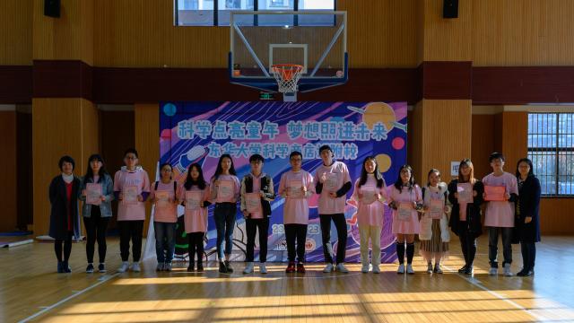 体育馆里,衣着粉色志愿者服装的科学商店大学生志愿者们充满热情和活力,为孩子们“量身定制”集趣味性与互动性为一体的科普实践和游戏活动,带领孩子们畅游科学知识的海洋。