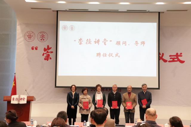 在“崇德讲堂”顾问、导师聘任仪式上,校关工委常务副主任浦解明受聘为顾问,关工委讲师团成员王依民、贺善侃、袁琴华、顾莉琴受聘为导师。刘淑慧为他们颁发聘书。