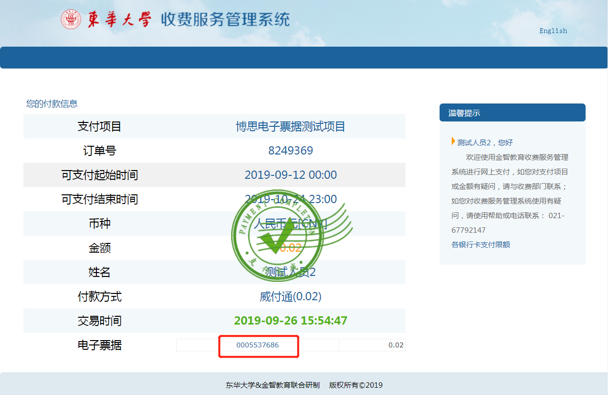 (付款信息界面点击查看保存PNG格式电子票据)