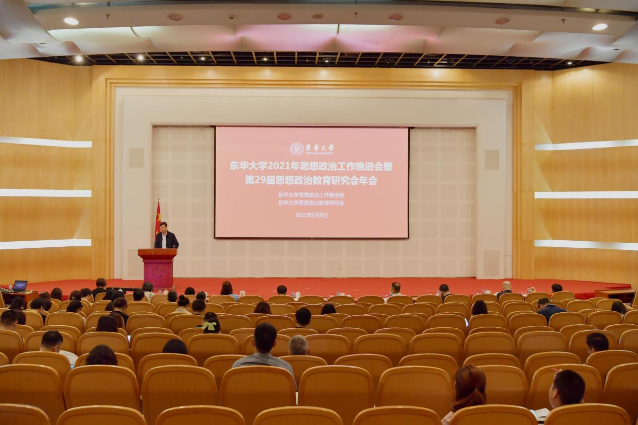6月8日,学校在松江校区召开2021年思想政治工作推进会暨第29届思想政治教育研究会年会,围绕“培根铸魂 开创学校思想政治工作新篇章”主题,表彰先进,交流经验,推动“十四五”学校思政工作开好局起好步。党委书记刘承功,校长俞建勇,党委副书记刘淑慧、崔运花,党委副书记、纪委书记王云骏,副校长邱高、舒慧生、李炜,党委常委朱英、任晓杰出席会议。