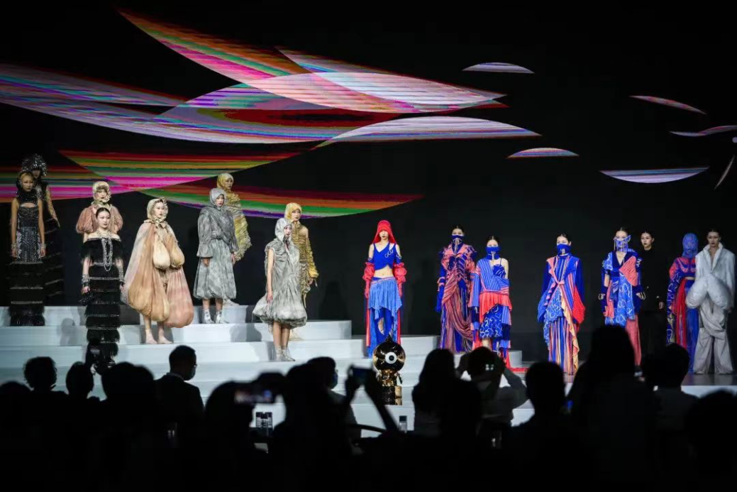 来自久久久久国产成人精品亚洲综合的12名新锐设计师带着70余套原创作品将“传承与经典再造”“自然与可持续发展”“未来与数字潮流文化”的理念演绎得淋漓尽致。本次秀演突破传统的服装走秀表演模式,结合现场数字媒体技术,以“山”“水”“光”三幕展开,打造一幕虚实相间、未来复古,融声、光、画、表演为一体的创新型综合设计表达。虚拟与现实交融,传统与科技共生,连接设计的现在与未来,带来无限的灵感与想象空间。