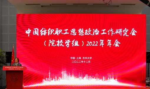 12月14日,由我校承办的中国纺织职工思想政治工作研究会(院校学组)2022年年会在松江校区举行。中国纺织服装教育学会常务副会长倪阳生,中国纺织职工思想政治工作研究会秘书长郑国峰,中国纺织职工思想政治工作研究会(院校学组)会长、北京服装学院党委副书记倪赛力,天津工业大学党委副书记胡英江,武汉纺织大学党委副书记、副校长罗锦银,浙江理工大学党委副书记姚珺,西安工程大学党委副书记井浩,中原工学院党委副书记邹松涛,河南工程学院党委副书记袁静波,成都纺织高等专科学校党委副书记周红等校外领导线上出席。我校党委书记刘承功,党委副书记刘淑慧,党委常委、党委宣传部部长任晓杰线下出席。年会开幕式、闭幕式由刘淑慧主持,主题报告由任晓杰主持。